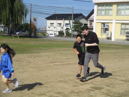 晴れ渡る青空の下、自分のペースで3分間走ります。