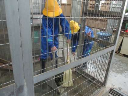 レッサーパンダグループは、パネルを見ながらレッサーパンダについて詳しく教えていただき、子供たちは熱心に耳を傾けていました。その後、レッサーパンダの部屋を掃除しました。
