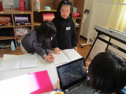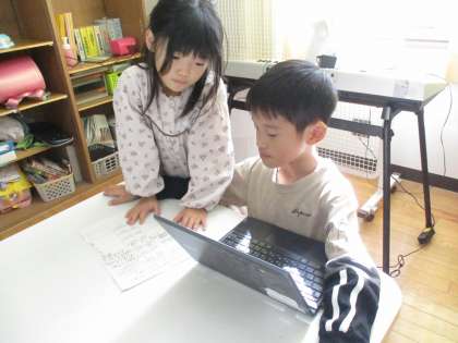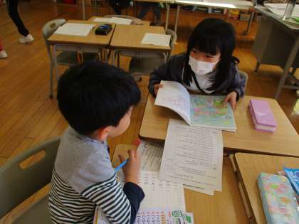 11月9日(木)2年生 九九名人目指して頑張っているよ☆ 公開日 2023/11/10 更新日 2023/11/10 2年 6〜9、1のだんの九九を自分でつくる、九九を唱える・覚える、問題を解く「チャレンジ学習」をしています。子供たちは、自分でやりたいところを決めて、学習を進めています。同じだんの九九を学習している友達と一緒に考えたり、一人でじっくり考えたり、様々ですが、楽しく学習に取り組んでいます。友達に九九を聞いてもらったり、一緒に九九を覚えたりする姿も見られます。