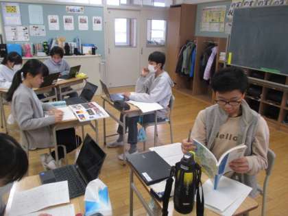 日本文化を発信するパンフレットを「アニメ」「花火」「和菓子」のグループに分かれて作成中です。
