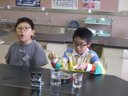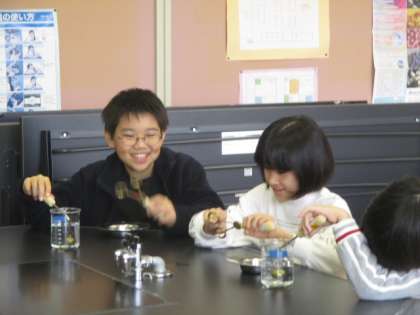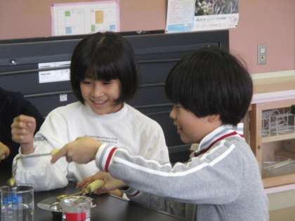 金属の温度を変えて体積の変わり方を調べる実験をしています。