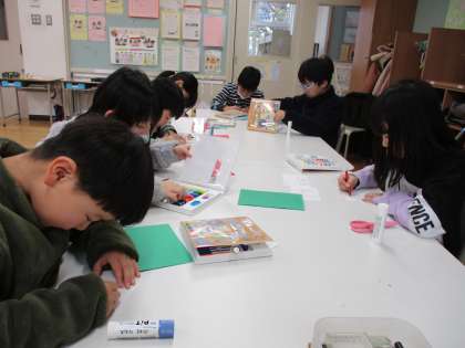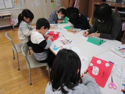 担当の子供が、塗り絵や画用紙、シールを用意してくれ、1人1枚クリスマスカードを作りました☆ものを作るのが大好きな子供たちは、夢中になって塗り絵やカード作りに取り組んでいました♪