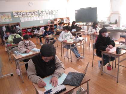 一人一人が選んだ好きな詩を自分なりに工夫して視写しています。