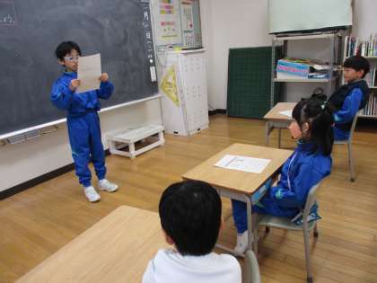 生活科「わたしたんけん」で、2年生になってできるようになったこと、頑張ったことを紹介し合いました。友達の発表を聞いて「一人で料理ができるようになってすごいね」「たくさん練習して、できるようになって嬉しいね」など、素敵なところに気付いて感想を伝え合いました。