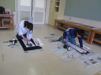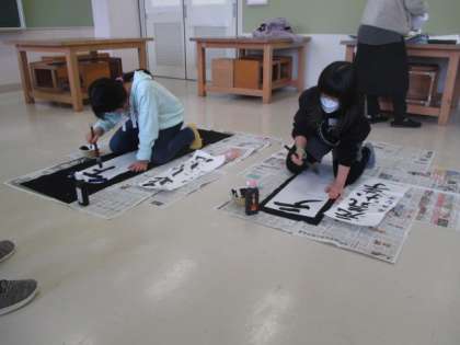 ひまわりタイムに、富山県書初大会に出場する子供たちが練習をしました。1文字1文字に集中して練習しています。