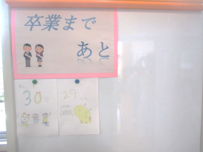 今年も卒業までのカウントダウンが始まりました。6年生が卒業までのカウントダウンボードを交代で作ります。卒業まであと少しですね。