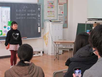 2年生最後の学習参観は、この一年でできるようになったことの発表でした。みんな自信をもって堂々と発表することができました。
