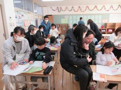発表の後は家族と一緒に自分が赤ちゃんだった頃を振り返りました。今日の発表の姿と赤ちゃんだった頃を比べて「本当に大きくなったね」と話し合う声があちらこちらから聞こえました。これからも、元気に大きくなっていきましょう。