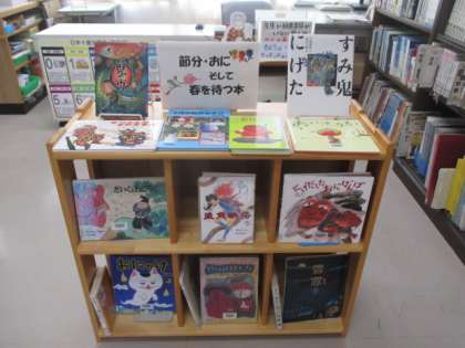 図書室では、節分にちなんで鬼の本が展示されています。ぜひ、読んでみてくださいね。