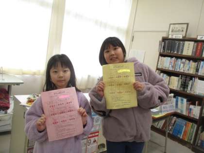 本で知識がいっぱい情報委員会が企画した図書ビンゴでパーフェクトを達成して嬉しい子供たちもいます。