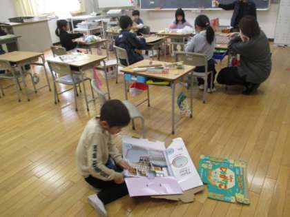 2月7日(水)2年生図工 ともだちハウスをつくろう