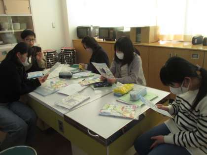 6年生は、バッグをつくるため、材料を確認しています。