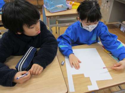 2月21日(水)2年生 はこの形の学習をしています☆ 公開日 2024/02/22 更新日 2024/02/22 2年 組み立てたら箱になるように、チームの人と話し合っています。どのチームも、箱になりました♪