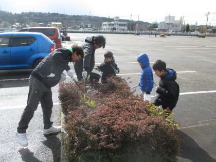15日(金)に開園する富山市ファミリーパークで開園前ボランティアを行いました。今年は、ファミリーパーク開園40周年をお祝いするために、総合的な学習の時間で活動を進めてきた「掃除プロジェクトチーム」の子供たちが考えた場所を掃除しました。