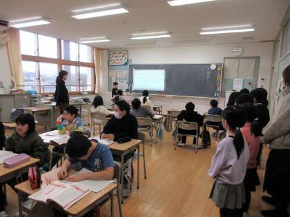 3・4年生の教室では、「学習リーダー」が手際よく漢字の学習を進めたり、新しい言葉を国語辞典で調べたりと、先生に教えてもらうばかりでなく、自分たちで学習を進めている姿にみんなびっくりしました。