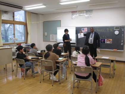 4年生の1時間目は、今年度着任された英語専科、ALTの先生方と初めての外国語活動の時間でした。ALTの先生からの自己紹介クイズでは、出身地や得意なスポーツについて楽しく答えていました。これからの学習も楽しみですね。