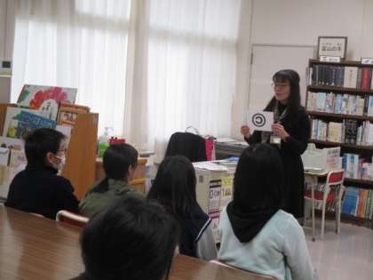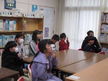 学校司書の先生に図書室オリエンテーションをしていただきました。著作権についてのクイズでは、自分たちの日常生活を想起しながらクイズに答え、改めて著作権について考えることができました。