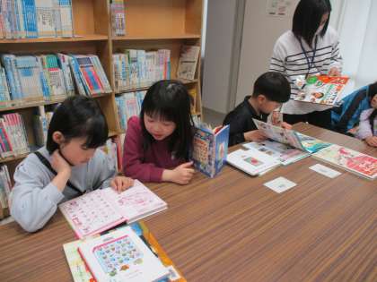 学校司書の先生から、図書室の使い方を教えていただきました。本のクイズや読み聞かせも楽しみました。最後に好きな本を借り、楽しそうに読書をしていました。今年も、図書室のルールを守ってたくさん本を読みましょう!