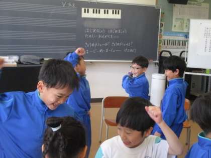 4月10日(水)1・2年生音楽 楽しい音楽始めましょう