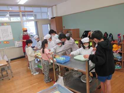入学してから1週間が過ぎました。給食にも慣れてきたので、今日は3人グループになって給食を食べました。楽しく給食を食べることができました。