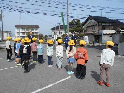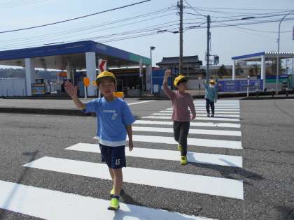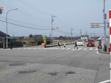 1・2年生は、グループに分かれて実際に交差点を横断します。教えていただいた約束を守っています。