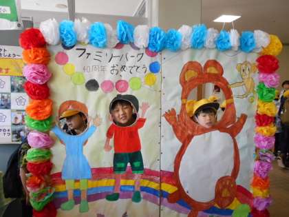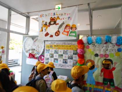 今日は子供たちが楽しみにしていた、ファミリー遠足の日です。ファミリーパークに到着後は、自然体験センターの40周年お祝いプロジェクトを見に行きました。