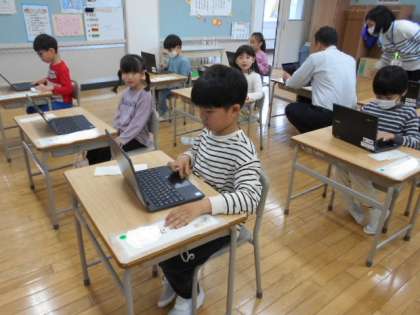 今日からクロムブックを使い始めた1年生です。ルールを守って、いろいろな学習で使っていきましょう。