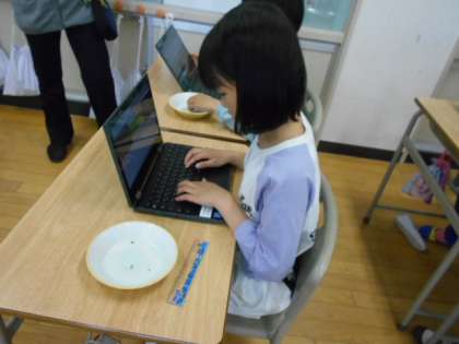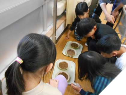 ひまわり、ピーマン、ホウセンカ、オクラ。それぞれの種を観察して気付いたことを記録した後、大切に種を植えました。