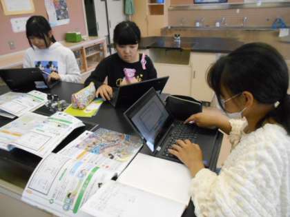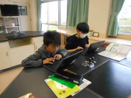 窒素、酸素、二酸化炭素それぞれの気体を集気びんに入れたろうそくの燃え方に違いはあるのでしょうか。観察したことをデジタルノートに記録しています。