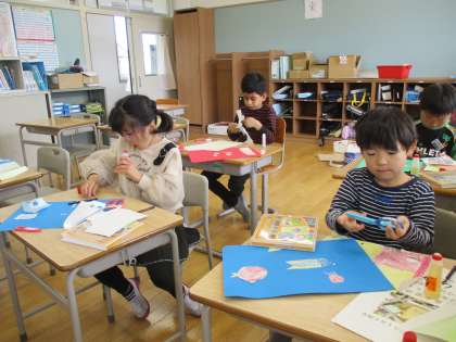 1、2年生 図画工作の時間 公開日 2024/05/02 更新日 2024/05/02 最新の出来事 図画工作の時間に、こすりだしの模様を使って作品を作っています。海の中のようす、森の中のようすなど、いろいろな世界をつくっています。どんな作品ができるか楽しみです。