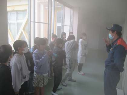 5月9日(木) BFC授与式授与式 公開日 2024/05/09 更新日 2024/05/09 5年 今日の2限にBFCのバッジ授与式がありました。校長先生や呉羽消防署長から火の便利さや怖さの話を聞いた後、BFCのバッジを授与していただきました。 その後、理科室で煙中体験をさせていただきました。消防士さんから煙の怖さを聞いた後、実際に煙の中を歩き、火事の怖さを改めて感じることができました。