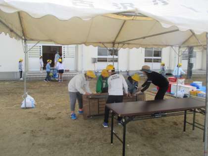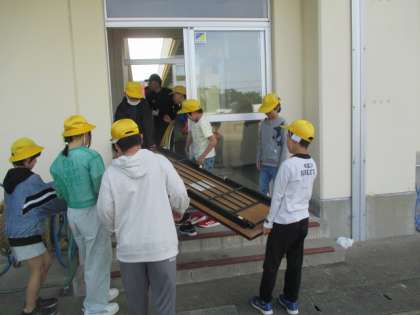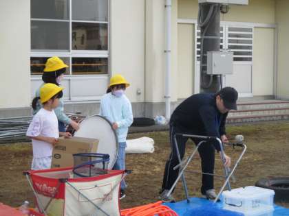 登校してきた4〜6年生児童も準備に加わります。予行がスムーズに進むように率先して準備する姿が頼もしいです。