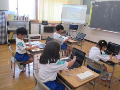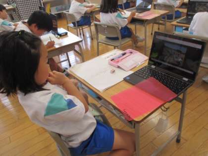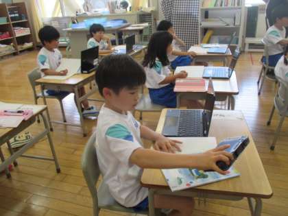 クロームブックに載せてある写真の様子から、「を」を使って文をつくっています。クロームブックの使い方も上手です。
