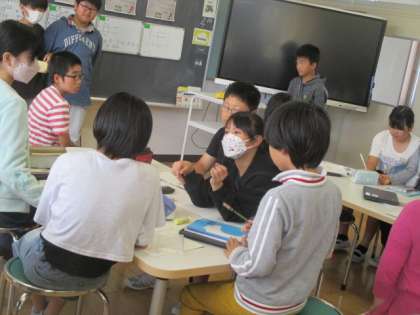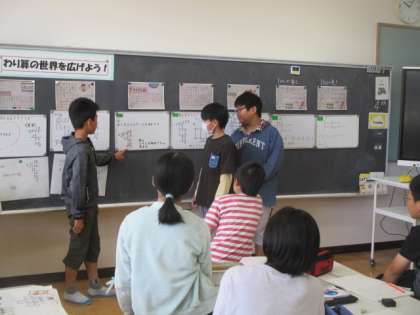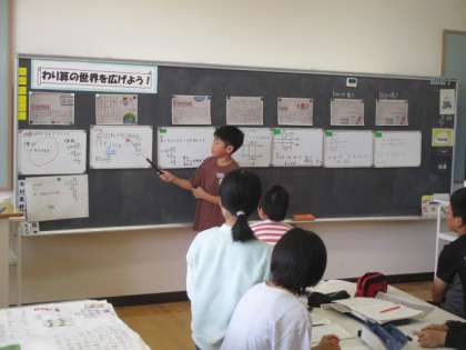 「わり算の世界を広げよう」の学習に取り組んできた子供たち。今日は、宿泊学習に関連する問題にチャレンジしました。問題の解き方を説明したり、分からないところを教え合ったりしながら、全ての問題をクリアすることができました。