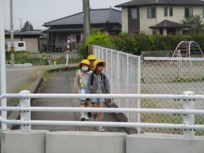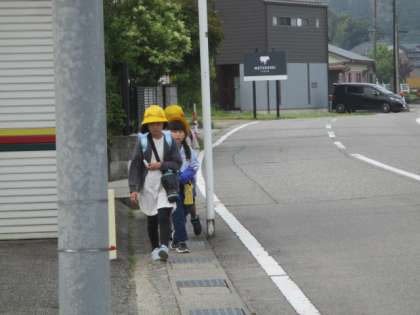 集団登校では、3年生がリーダーとなり1列で安全に登校する姿が見られました。