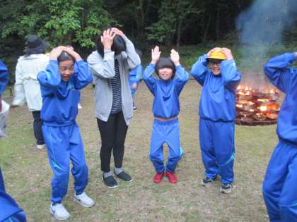6月6日(木)宿泊学習 キャンプファイヤー2 公開日 2024/06/09 更新日 2024/06/09 宿泊学習 「落ちた落ちたゲーム」、「犯人は誰だゲーム」、「1分間ゲーム」、「伝言ゲーム」と、たくさんのゲームをして、仲を深めました。最後は、火を囲み、「マイムマイム」をみんなで踊りました。友達と過ごす時間の大切さを改めて感じました。