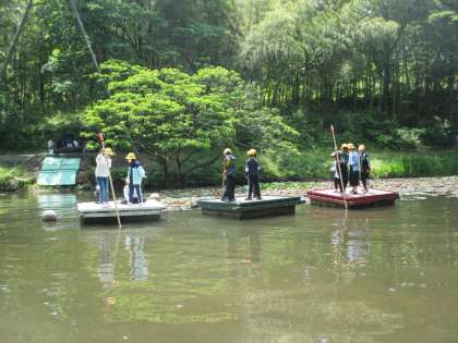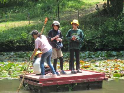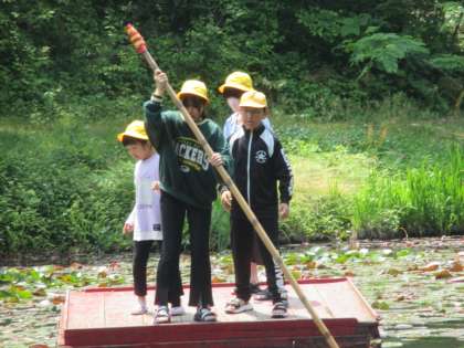 筏遊びでは、櫂の操作に苦戦していましたが、慣れてくると池を自由に動き回れるようになりました。最後は教頭先生も一緒に楽しみました!