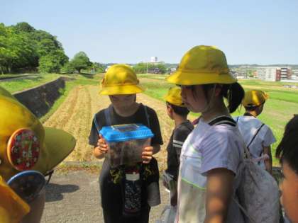 5月21日にファミリーパークから預かったホクリクサンショウウオを放流してきました。今まで毎日の水替えやえさやりを一生懸命行ってきた3・4年生は、ファミリーパークの職員の方と一緒に放流する森へ向かいました。今日は気温が高いので、たっぷりのコケと水を多めに入れたカゴに大切なホクリクサンショウウオを入れていきました。