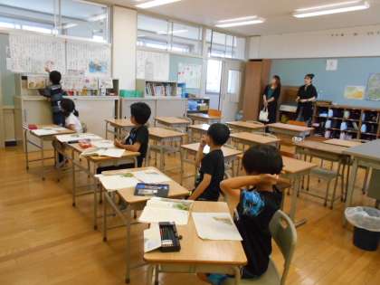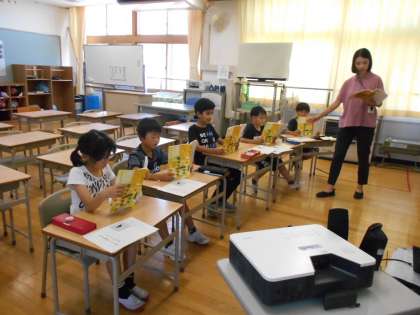2年生は国語の学習をしました。物語文「スイミー」を読み、登場人物の気持ちを考えて話し合いました。子供たちはこれまでに学習した場面のできごとを思い出しながら、じっくりと考えていました。5人での音読もとてもじょうずになりました。