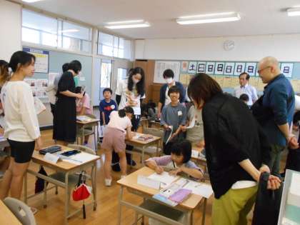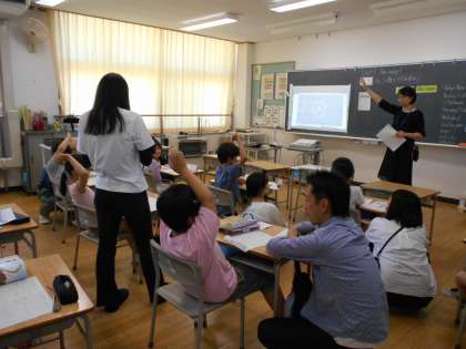 3年生の外国語活動では、「How many〜」の文を使って、20個までの数を英語で答える学習を行いました。みんなでリンゴの数を答えるゲームを行いながら、自然に英語を話していました。