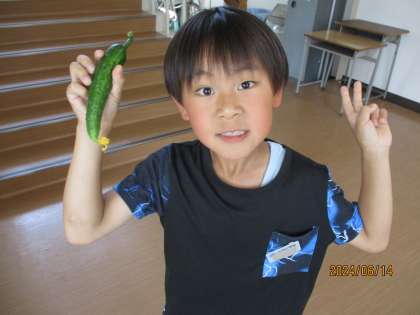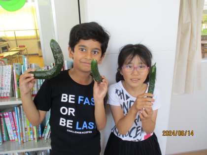 今日もおいしそうなキュウリの収穫がありました。どのようにして食べるのか楽しみですね!