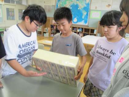 今日の租税教室では、富山税務署の方から、税金について教わりました。もしも税金がなかったらどんな街になるのかを、動画やクイズを交えながら学びました。最後には1億円のレプリカを持たせていただき、その重さを体感しました。