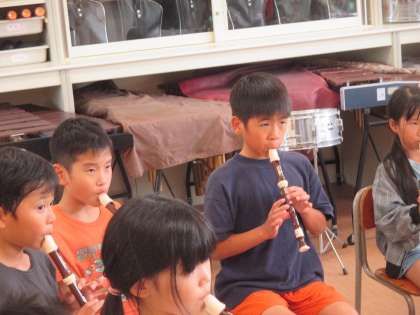 教頭先生にリコーダーの指導をしていただきました。体をリズムに合わせて動かしたり、タンギングに気をつけて、リコーダーを吹いたりしました。みるみる上達し、すてきな音色になりました。もっともっと吹いてみたいと話す姿が愛らしかったです。