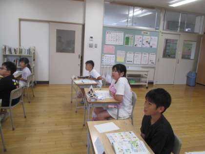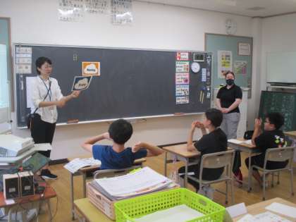 曜日を表す英単語を発音に気を付けて練習しています。専科やALTの先生方の「th」の発音をよく聞いています。