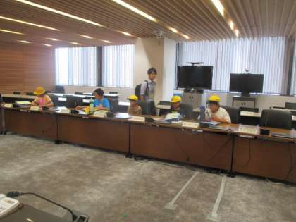 次に県防災危機管理センターを見学しました。1月の能登半島地震の際にもニュースで報道されていた会議場を実際に見ることで、富山県民の安全なくらしを支える仕事の大切さを実感しました。
