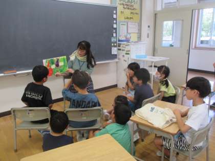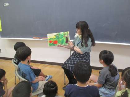 読書タイムの時間に、学校司書の先生が「水やりとうばん」の絵本を読んでくださいました。アサガオの花の水やりをしている子供たちは、主人公のなつみの気持ちがよく分かったことでしょう。