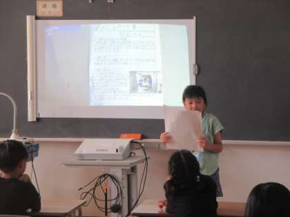 パン職人、看護師、声優、ゲームクリエイターなど、自分がなりたい職業について調べた報告文を発表しています。今日は、2年生にも聞いてもらいました。自分の言いたいことを伝えるために、声の大きさや読む速さにも注意して報告文を読んでいました。
