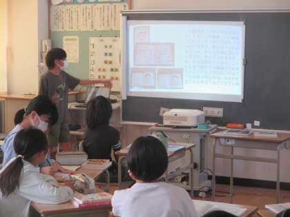 それぞれが本や読書をテーマにしてまとめたスライドを発表しています。友達の発表から考えたことをメモしながら、真剣に聴き合っていました。夏休み中も是非、たくさんの本に親しんで欲しいと思います。