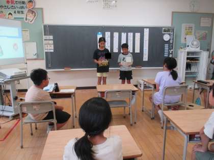 7月23日(火)みんなで笑顔になろう集会1 公開日 2024/07/23 更新日 2024/07/23 4年 今学期最後の集会です。準備万端、笑顔いっぱいの集会になりました。「まちがいさがし」「手品」「福袋」と楽しい出し物がいっぱいでした。