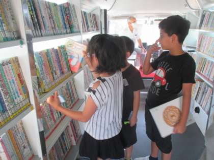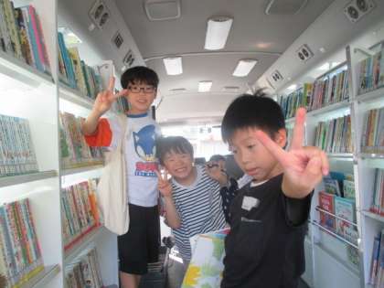 「久しぶり」「5冊借りてもいいんだよね」「折り紙の本はどこかな」自動車文庫を待ちわびていた子供たちが、本を選んでいます。借りる手順もしっかり覚えていました。2学期もたくさんの本を読んでいきましょう。
